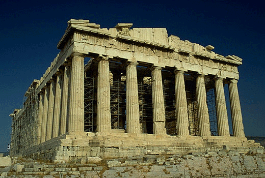 Below The western facade and northern flank of the Parthenon in the Acropolis, Athens, Greece. (5th century BC) |