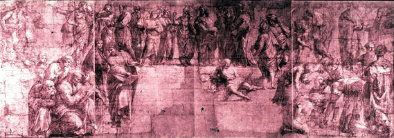 above Raphael, cartoon for School of Athens. Ambrosina, Milan. |