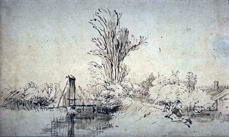above Rembrandt, Landscape with a Canal and Bridge. Pierpont Morgan Library (USA). |