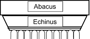 The Doric capital has two distinct parts: the upper slab called the abacus and the curved lower section called the echinus. |